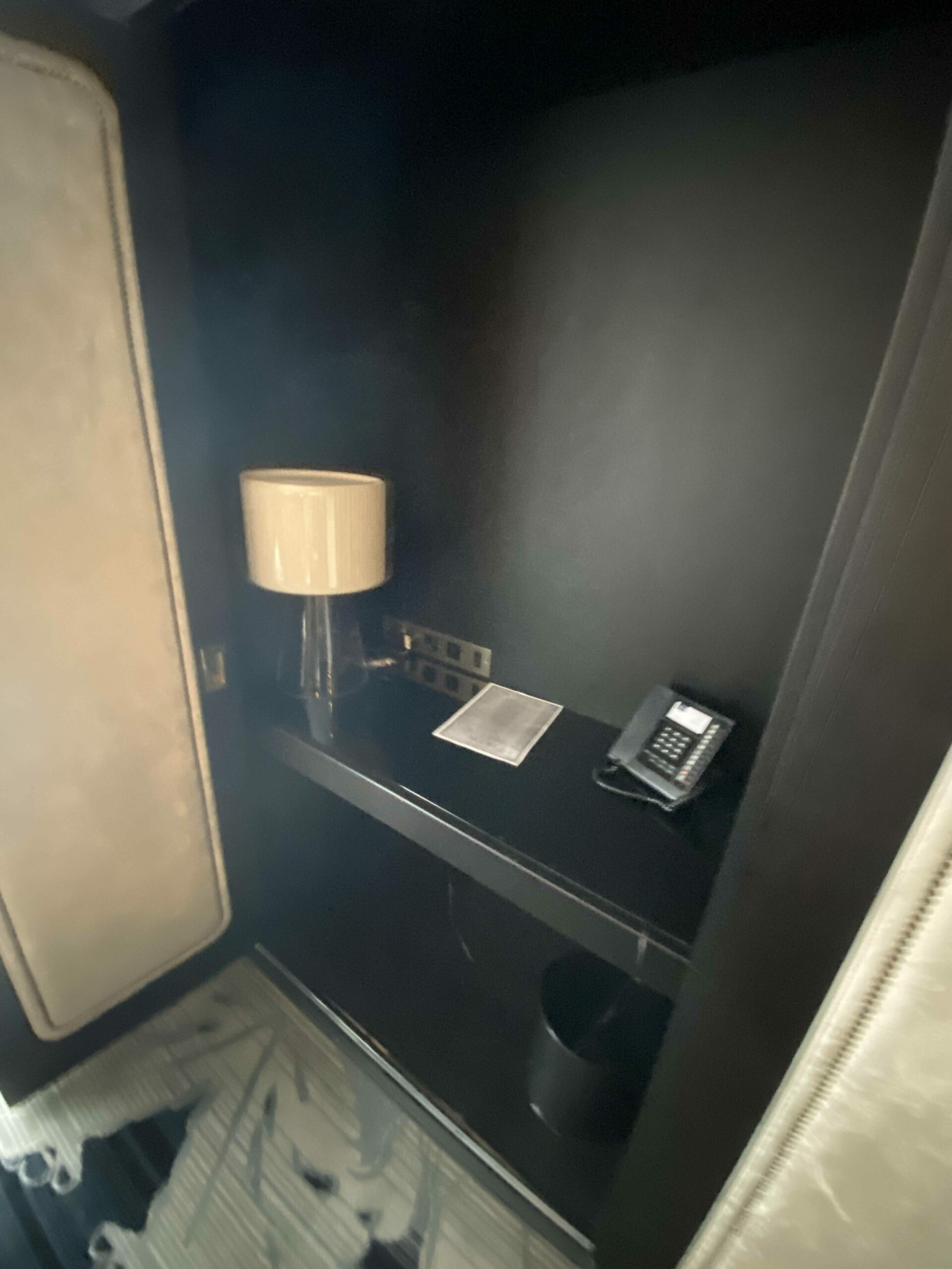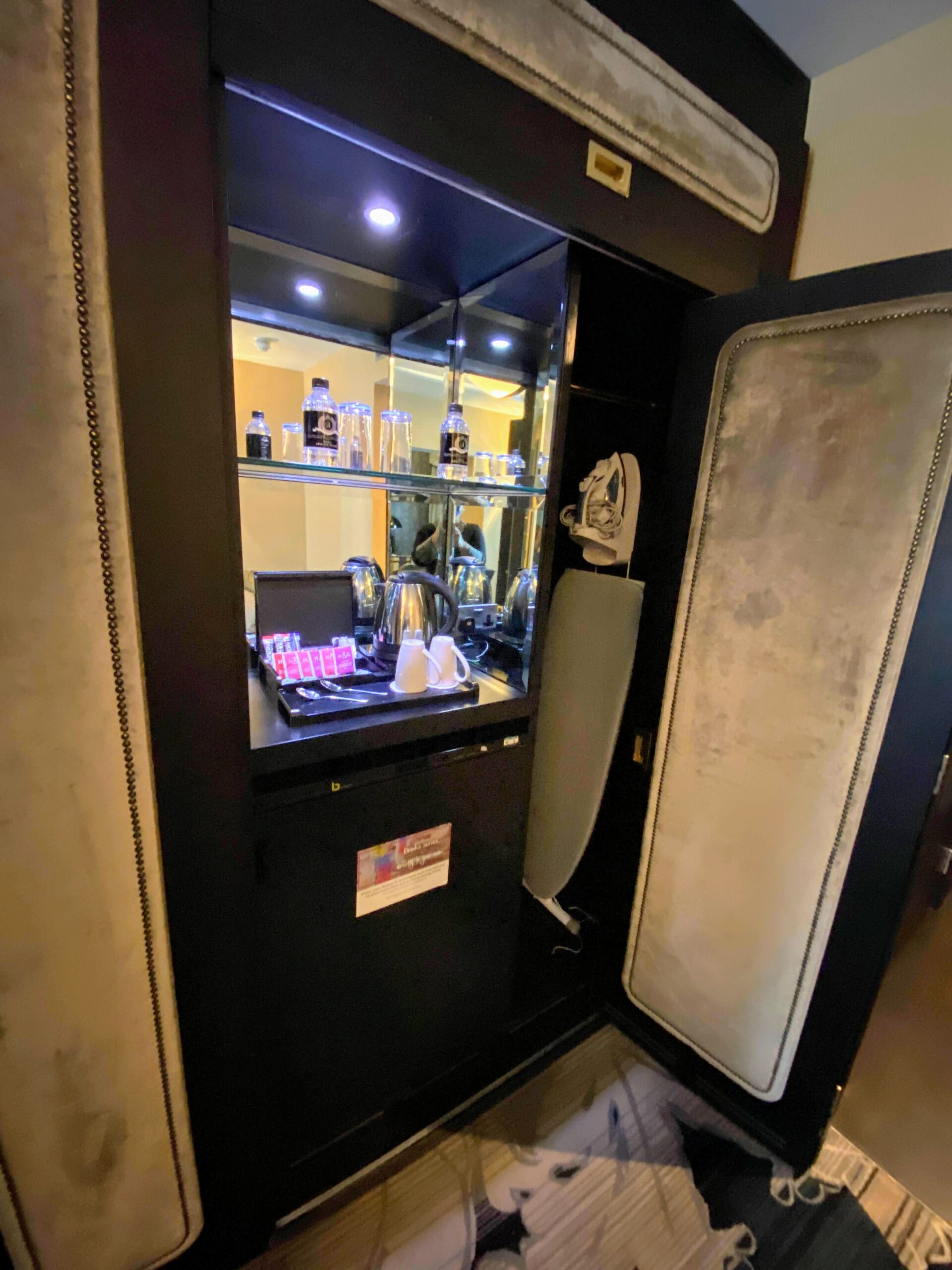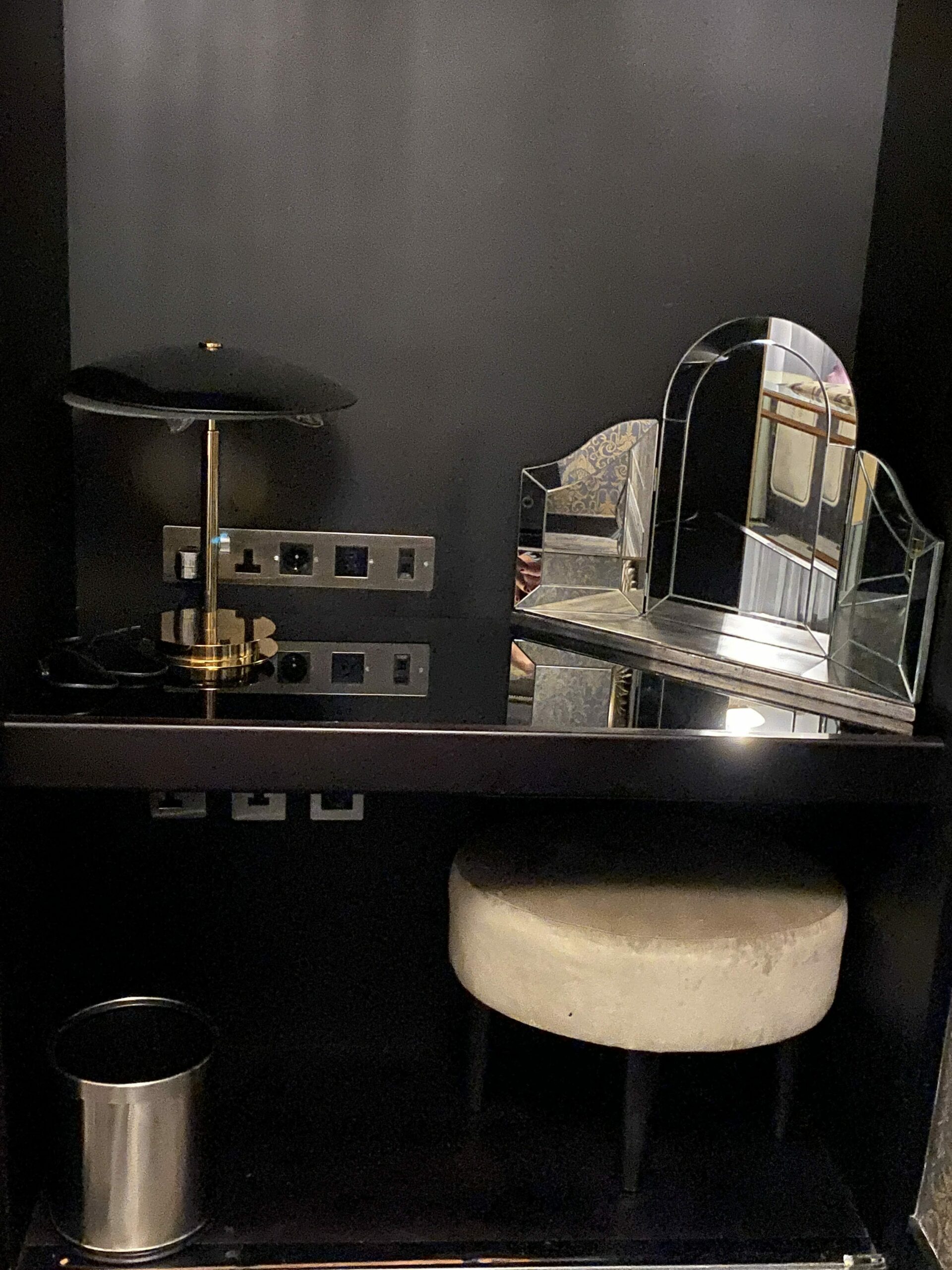 At first I was a bit confused as I could not see a TV, kettle, or anywhere to work. Then I started opening the cupboards and found pretty much everything I was looking for. If you need to work while you are here, the Junior Suite doesn’t really have a particularly useful space for this. Just a vanity area with a stool. The standard rooms have a desk with a proper chair. There is only one TV and it’s a long way from the bed which is a little odd.