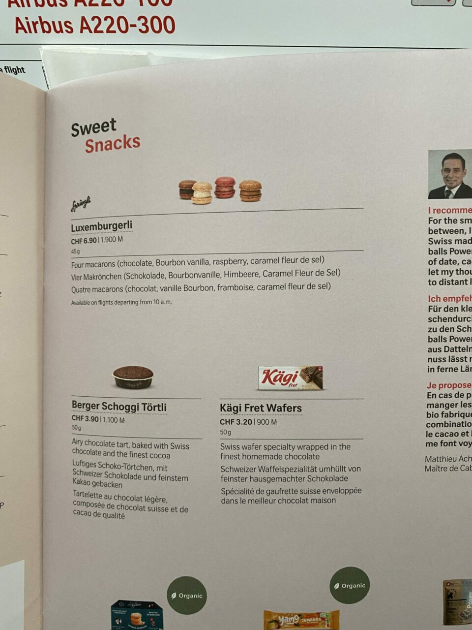 Just before landing we were handed a mini chocolate bar which Swiss is known for and was a lovely treat!
