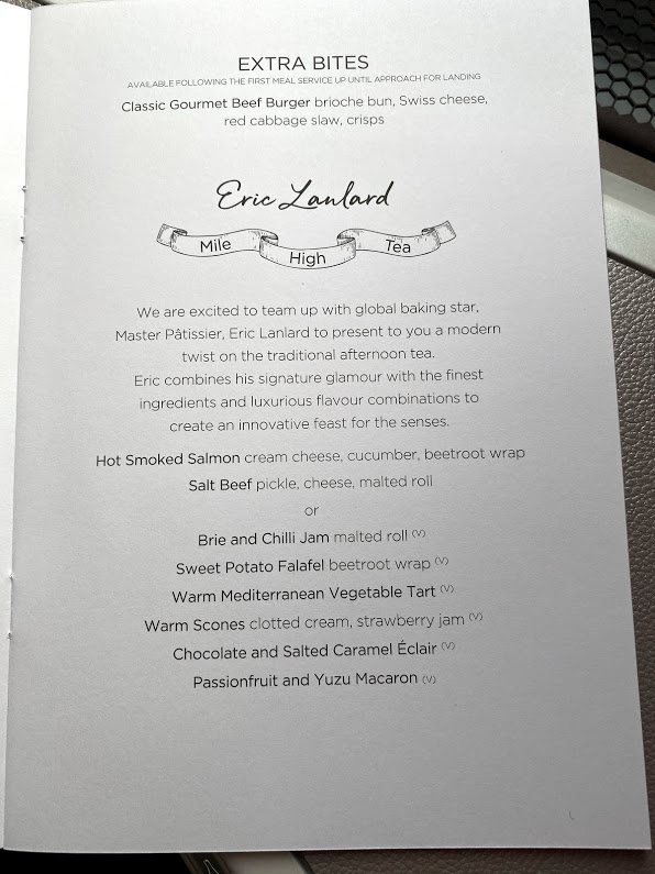Next came the cheese trolley but I was way too full and trying to save myself for the afternoon tea. One final word about the food service. It was very slow, I would expect with new aircraft this to be the case but hopefully, they will start picking up the pace as they get more familiar. It took around 1 hour 40 minutes after takeoff to get the starter and I was at the front. Strangely there were also no hot towels on the flight.