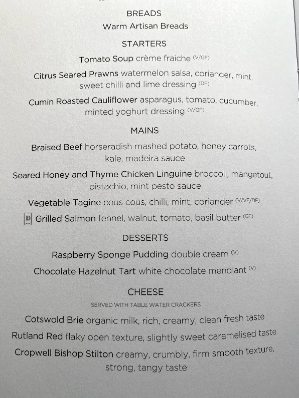 I was offered a welcome drink and went for the champagne which is still the Canard Duchene which I don’t mind. Menus were also at the seat, headphones and a bottle of water. Tops ups of champagne were offered before departure.