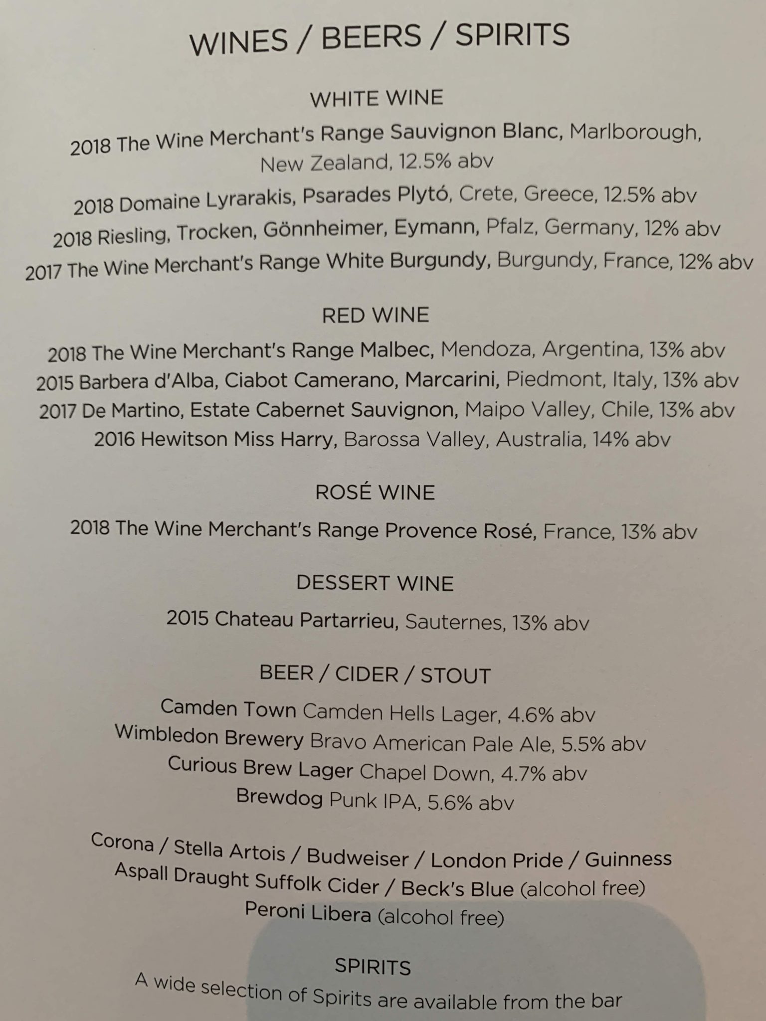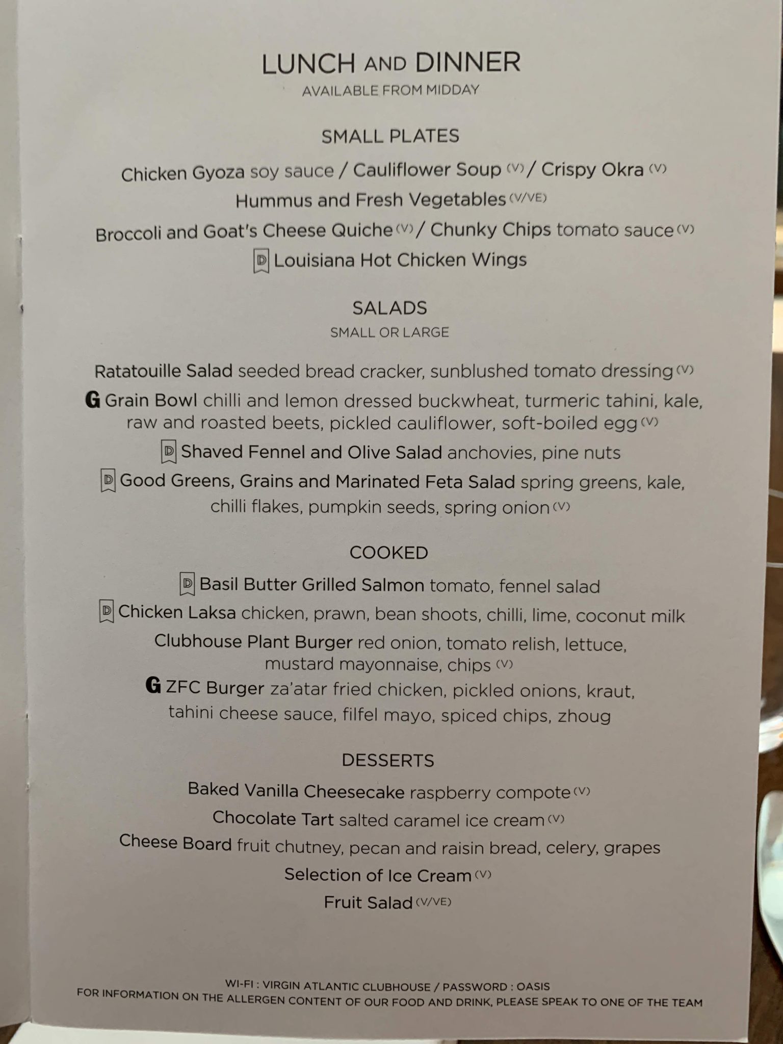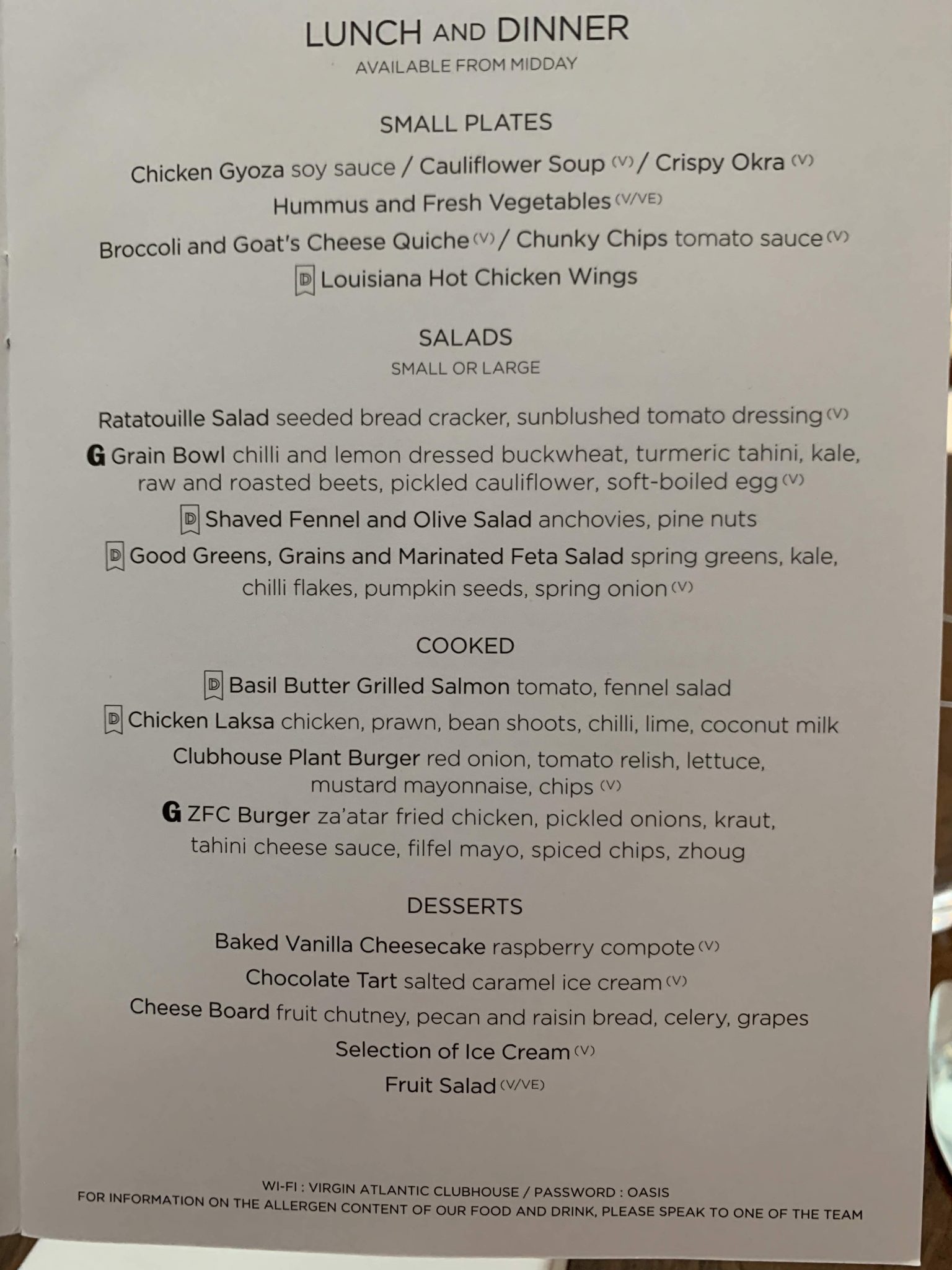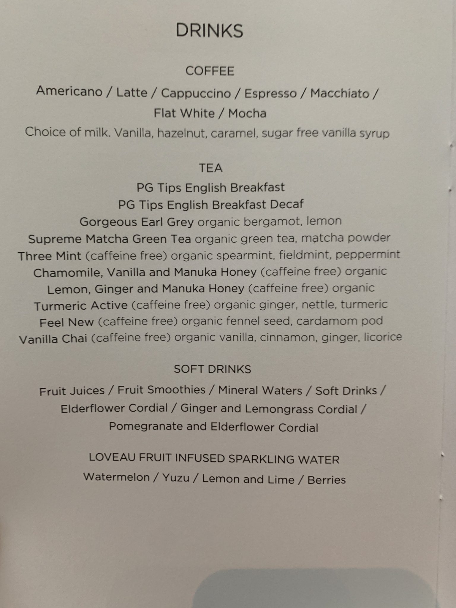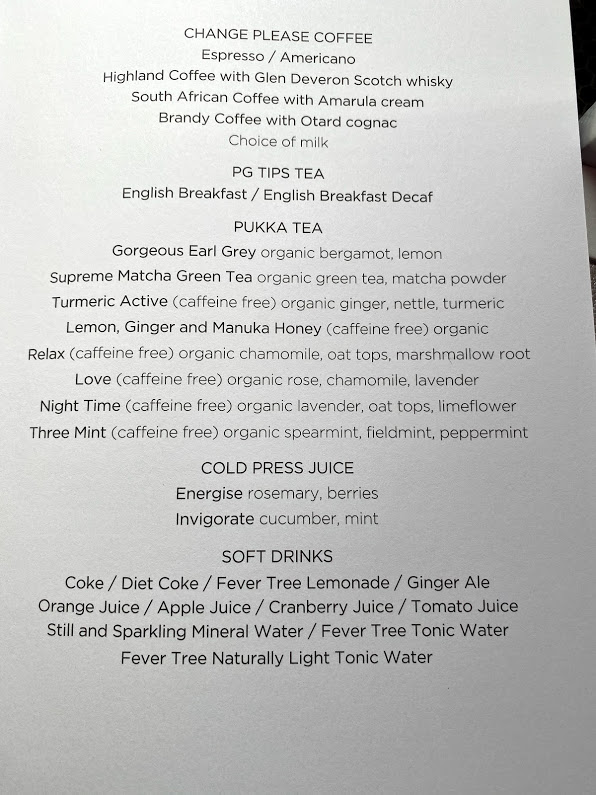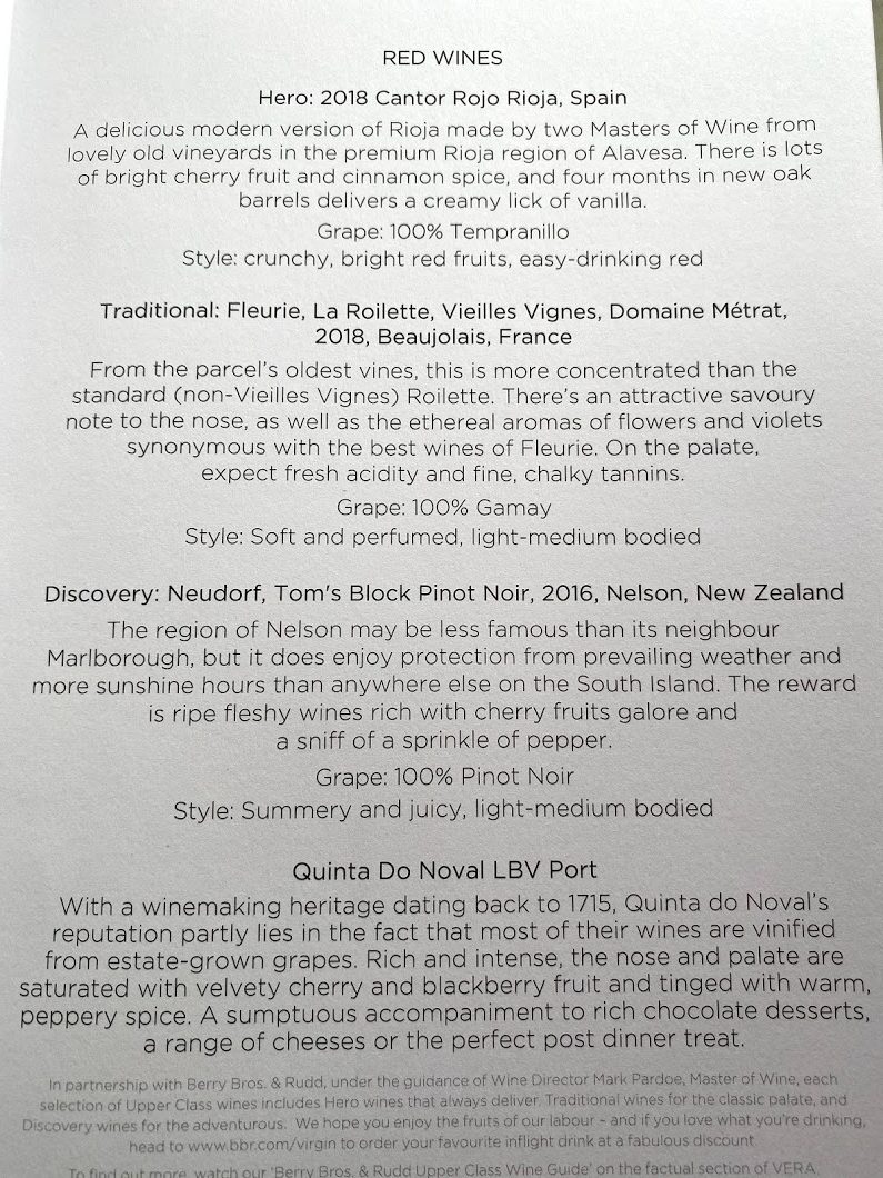 You can now order your food on Virgin in advance on selected flights which includes flights to Heathrow as well as outbound. Virgin will send you an email a few days before and you can order until 24 hours before. On this flight I wasn’t sure what I wanted so I didn’t bother to pre-order. Here is the menu and drinks list: