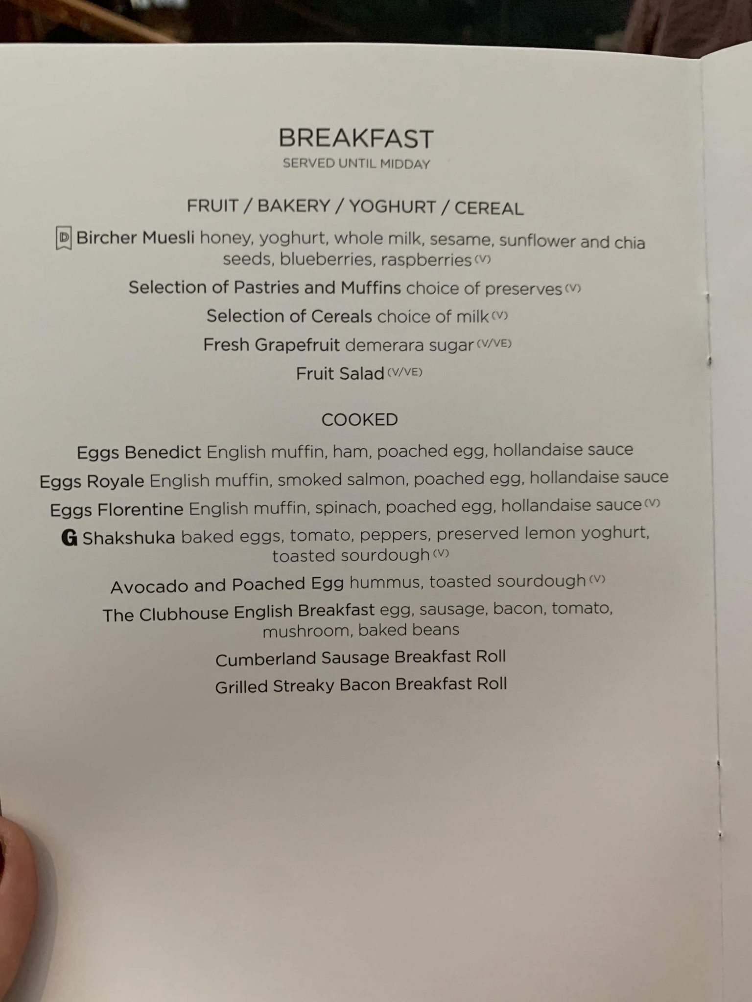 I ordered a bucks fizz, some fruit and the egg shakshuka. Here is the full menu: