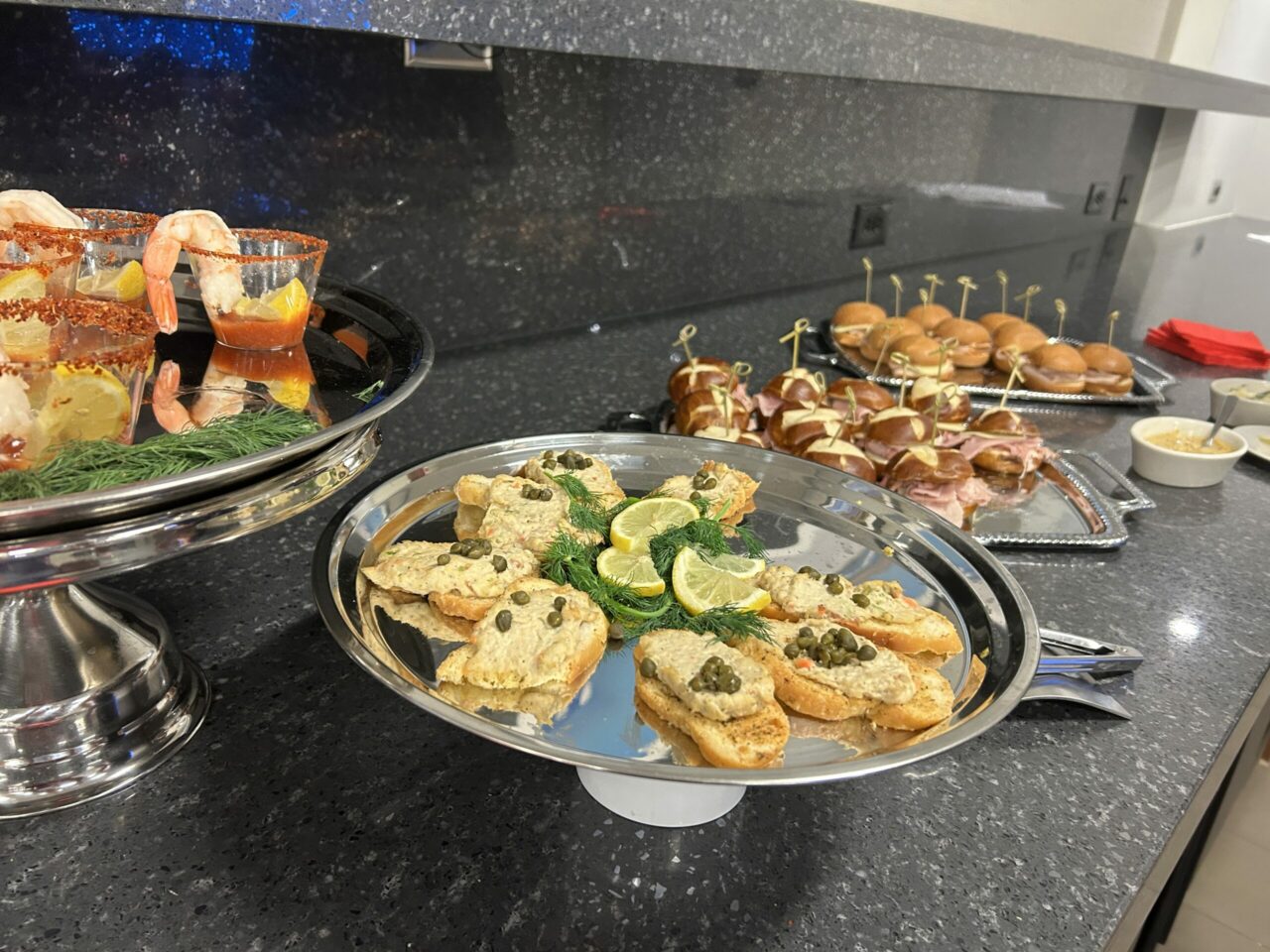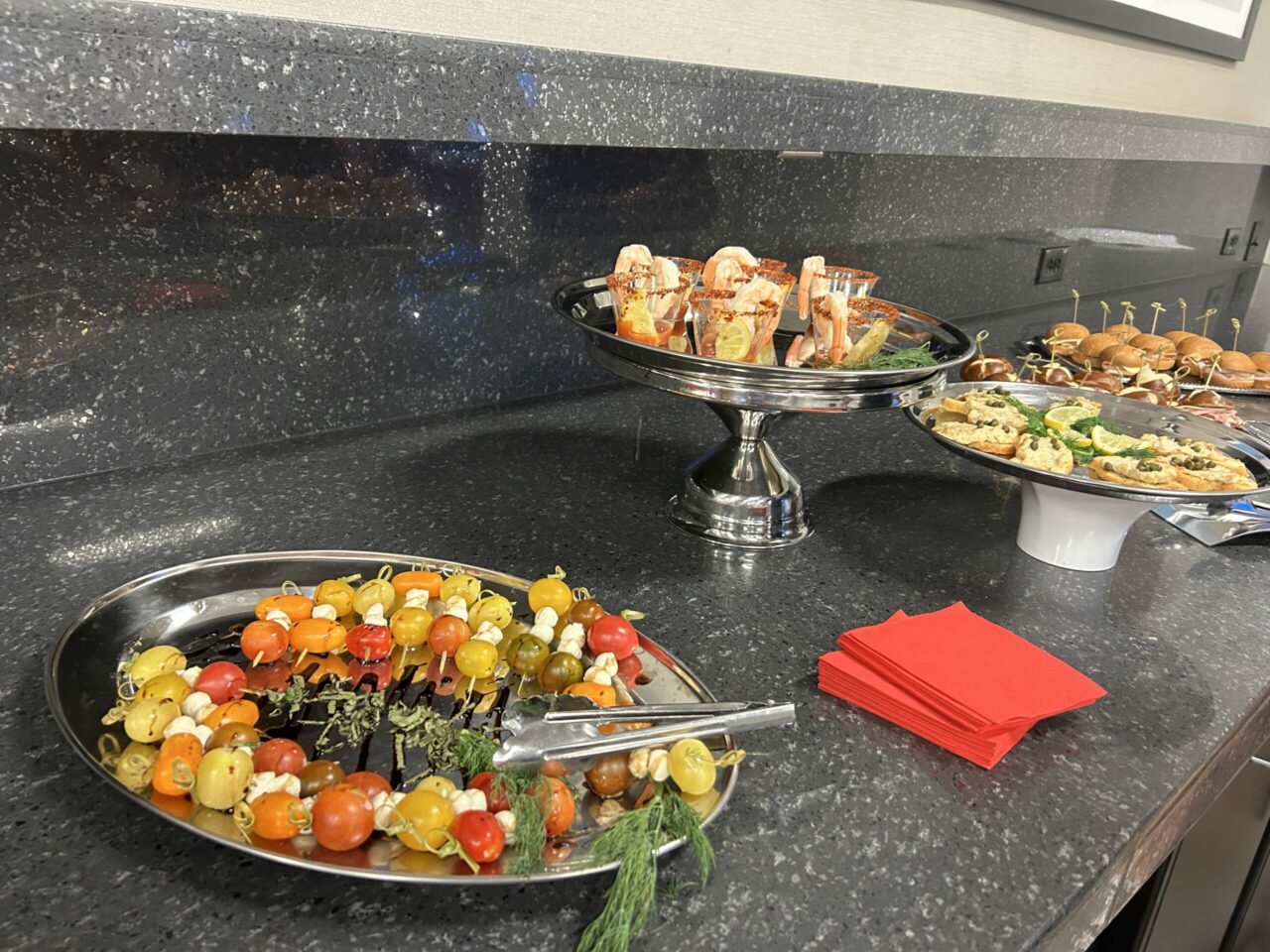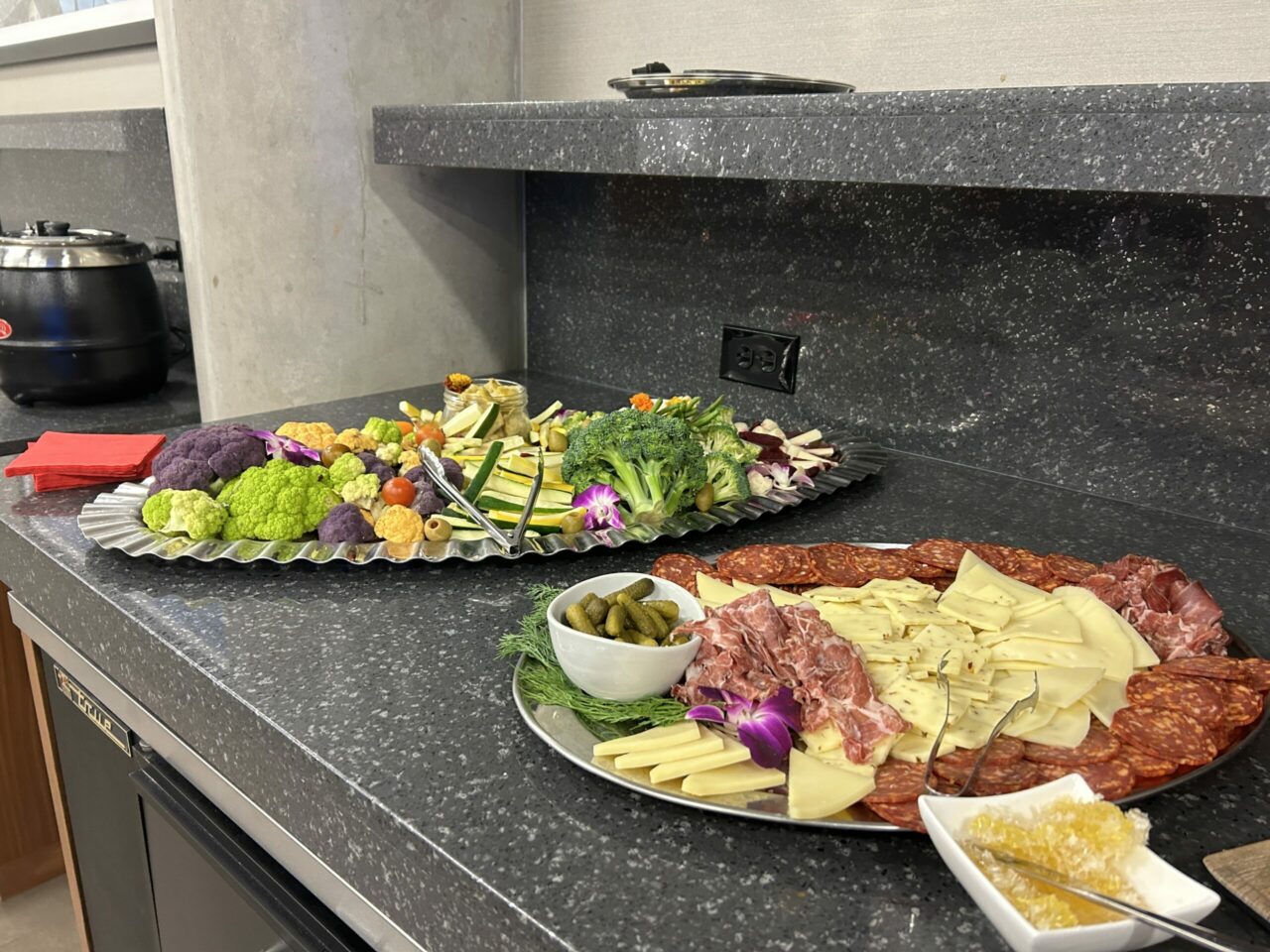 There was no shower, but there were changing facilities in the generous-sized toilets. There was a great array of food, too, with everything from prawn cocktails to charcuterie and cheese. The only hot food was soup.