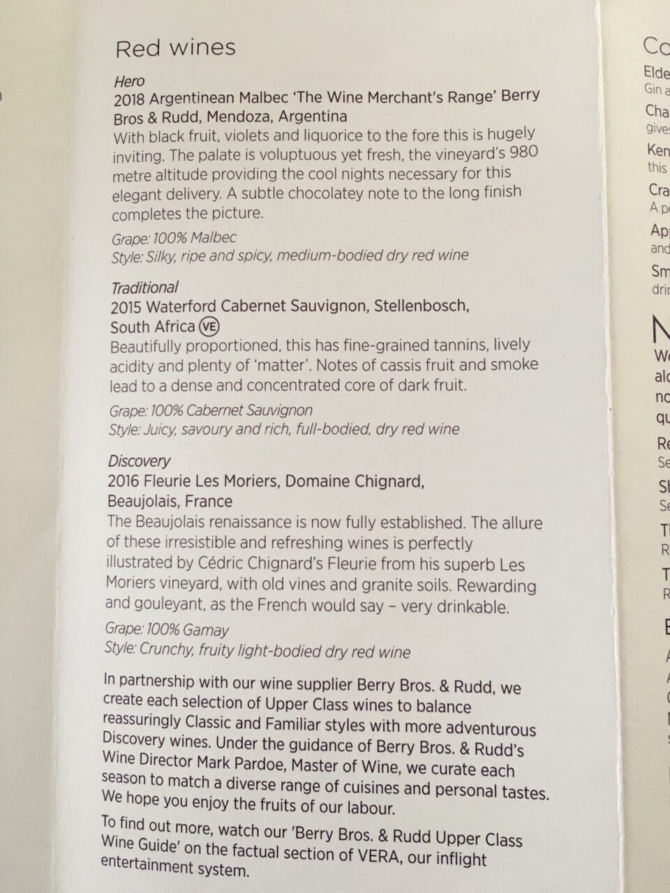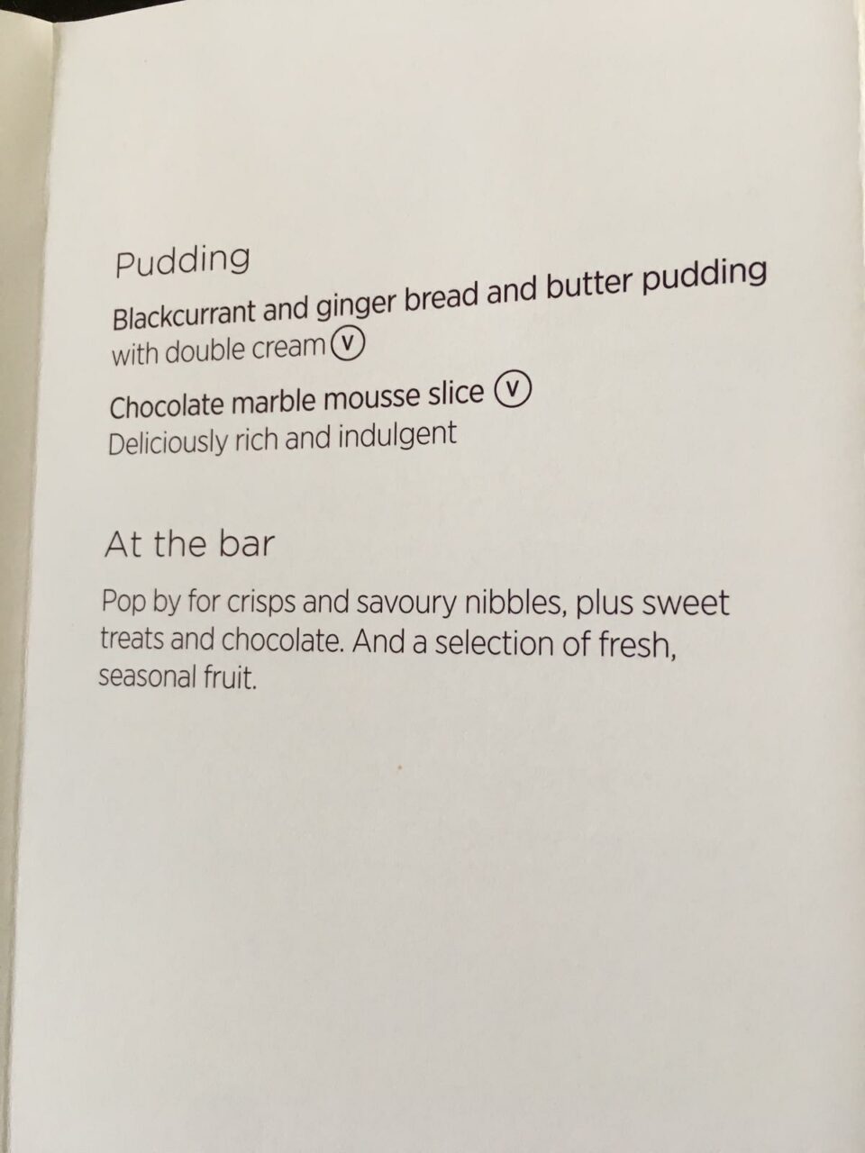 After a short break I enjoyed the Warm Blackcurrant and Ginger Bread and Butter Pudding. Michele always rates the warm Virgin desserts highly and this was just perfect. In the interests of a complete review, I forced myself to have the Cheese plate, which was most substantial. Cheese on an aircraft is often served far too chilled so I waited for a while for it to get to room temperature before I tried it. It was pretty bland to be honest. Why most airlines cannot deviate from Cheddar, Brie and a Blue is beyond me. I enjoyed a glass of the Quinta do Noval LBV Port.
