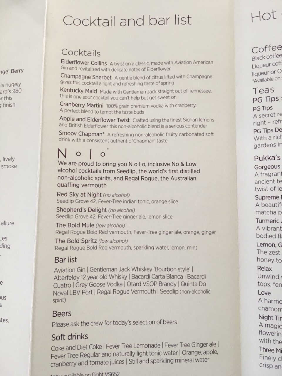 After departure, I had a glass of the Canard-Duchėne Champagne and then an Elderflower Collins (which was so acidic I couldn’t drink it) which was serviced with a bowl of ready salted crisps. I find that in general cocktails on an aircraft come in the premixed heavy handed variety and really should be avoided.