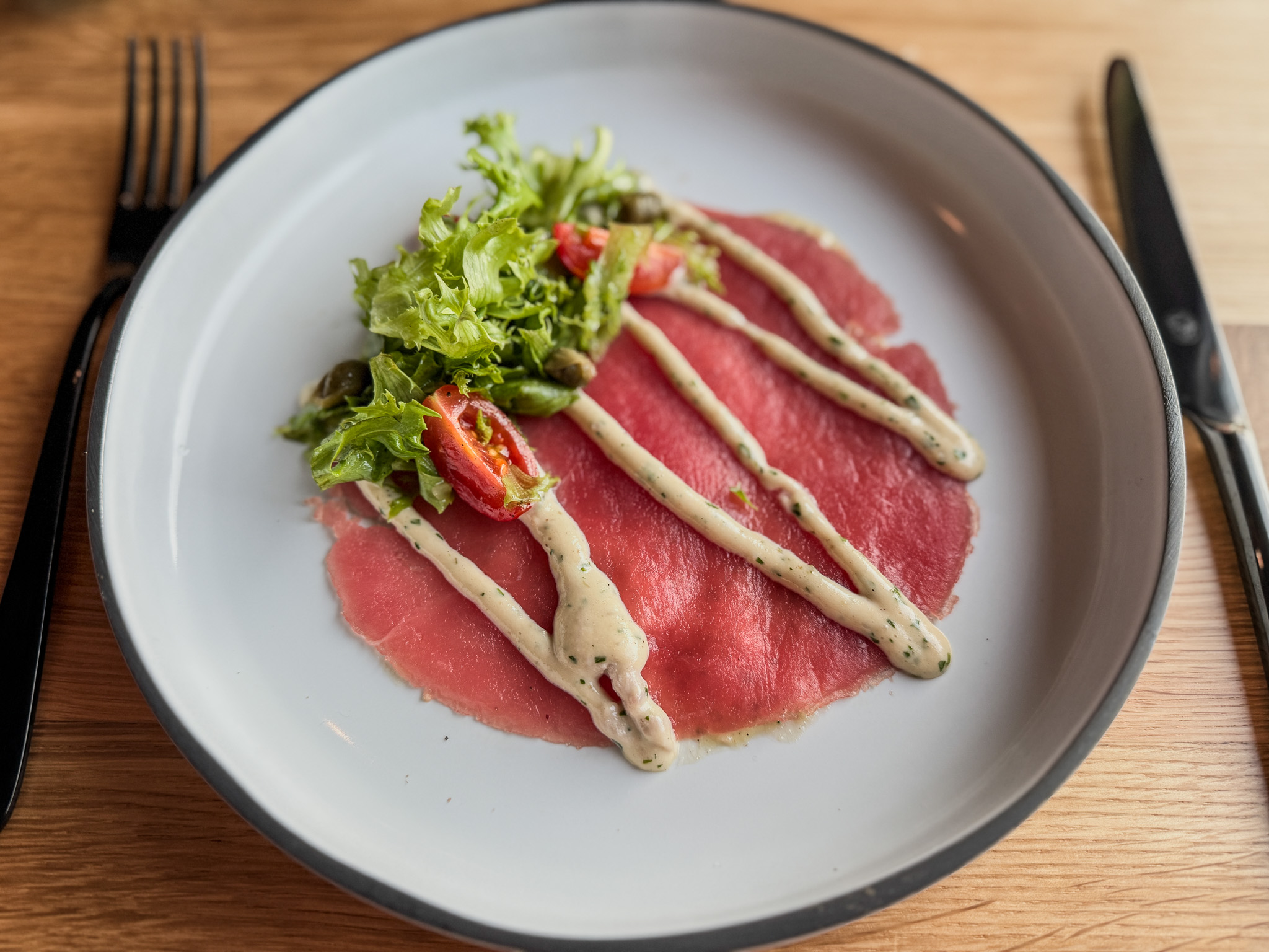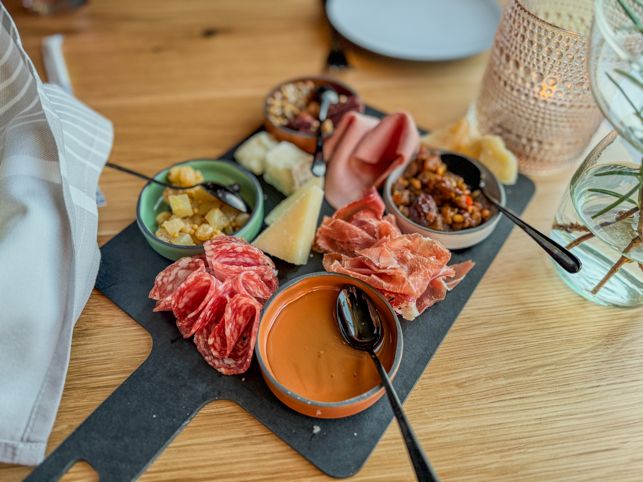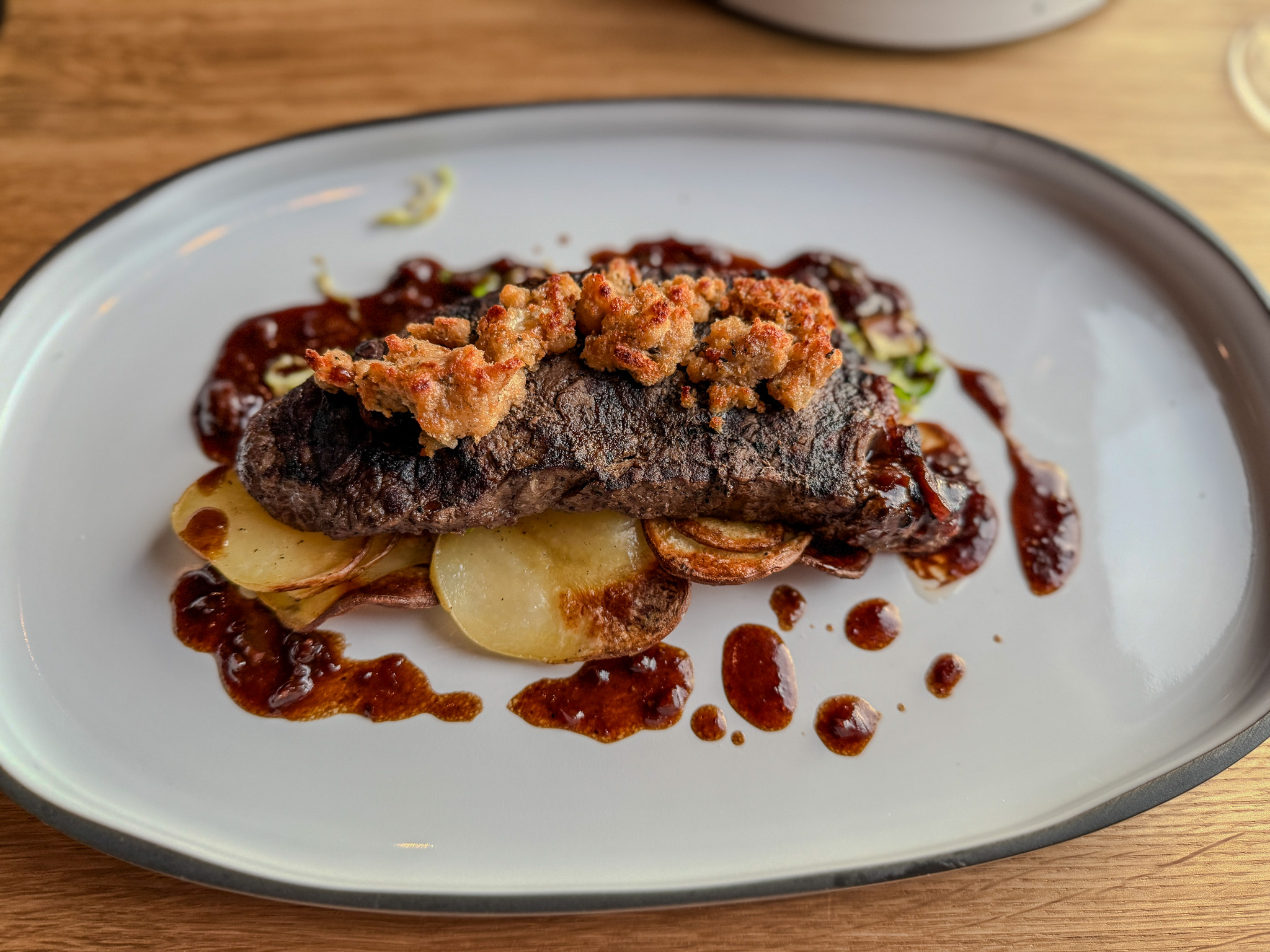 It was a full Virgin experience: we began with a charcuterie board, followed by braised mini meatballs and tuna tonnato from the antipasti. For our main, we both chose the Gorgonzola-crusted New York steak, accompanied by ricotta gnudi and braised lamb girella.