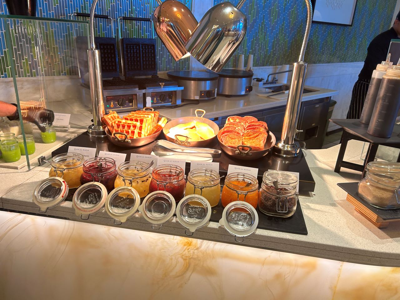 Breakfast was served buffet style in the all-day dining restaurant Qasr Al Bahar. I found the staff here very helpful, and I was addressed by name at all times after having given my name at the reception. You can either sit inside, which I thought looked elegant for a buffet restaurant, or outside on the terrace.