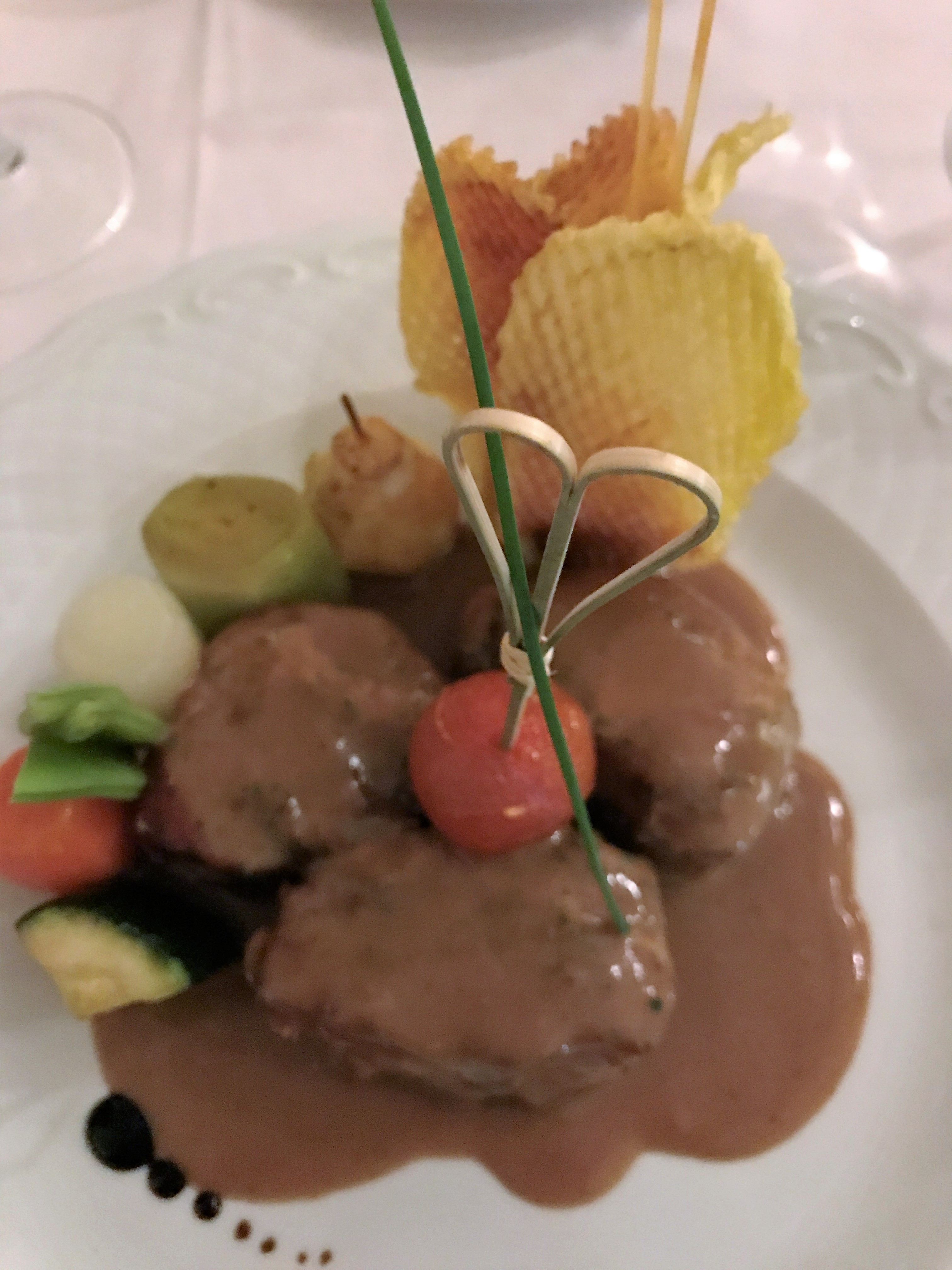 The Garum cellar offers a wide selection of Spanish wines produced in small, select vineyards. Each one is unique and has been hand-picked to complement the menu. We started with the more traditional gazpacho soup and then the slightly adventurous pastrami salmon with white sesame and teriyaki sauce; smoked salmon & shrimp roll and horseradish ice cream. Both were presented in a stylish way and were enjoyable.