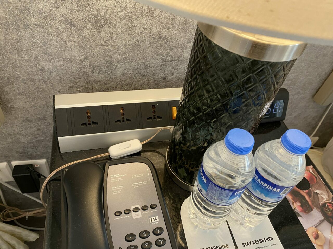 I found the bed of The Westin Dragonara Resort hotel very comfortable and the room was pretty quiet apart from the odd late-night person talking loudly in the corridor. As you’d expect the hotel had everything you would expect for a luxury hotel with the exception of a coffee machine. However, there was a kettle for tea and coffee at least. Bathrobes and slippers were also provided.