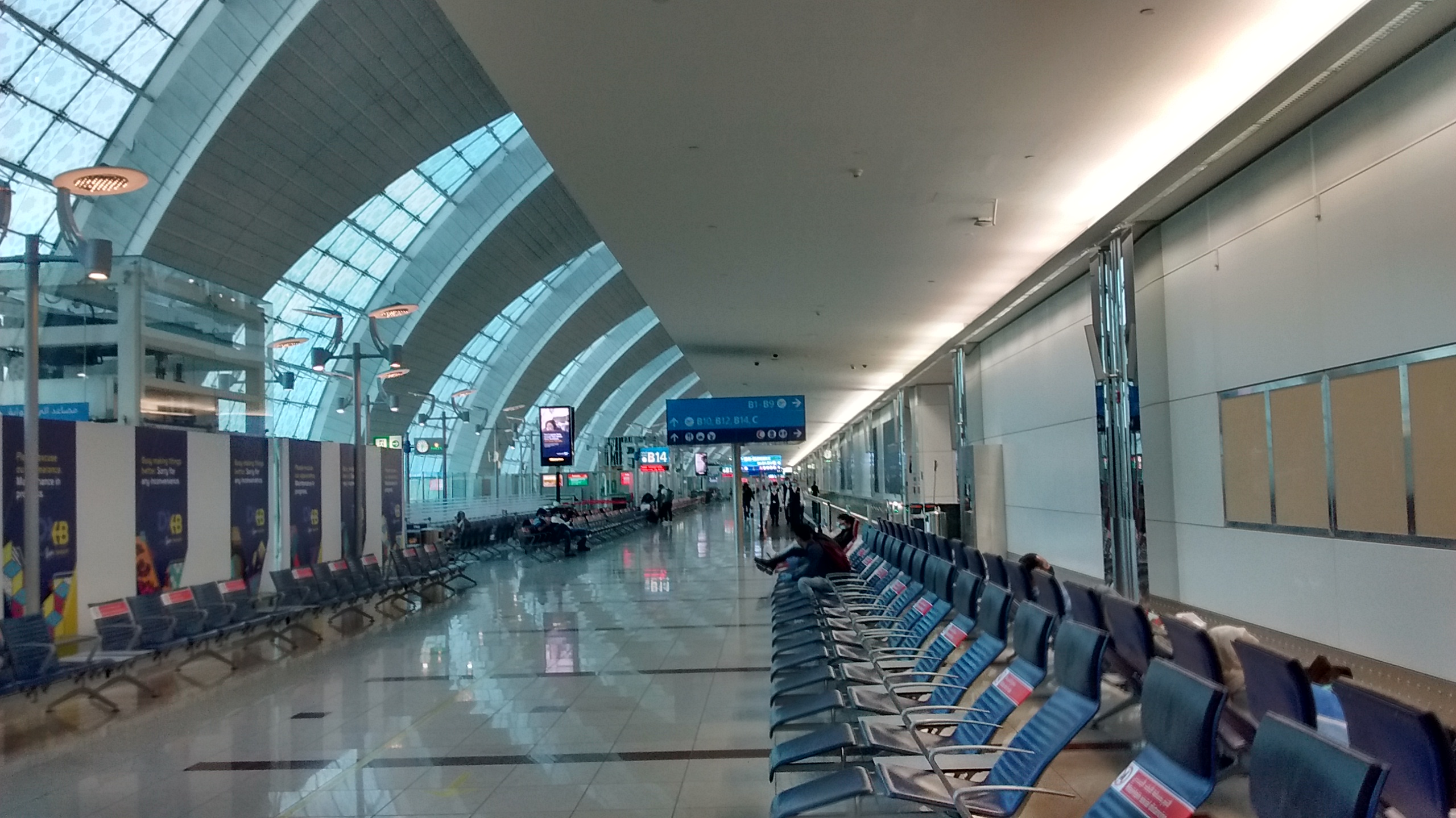 Airside there were gigantic signs on every other seat reminding us of social distancing and the terminal looked very different, with very few people sitting around and many shops still closed, including many catering outlets.
