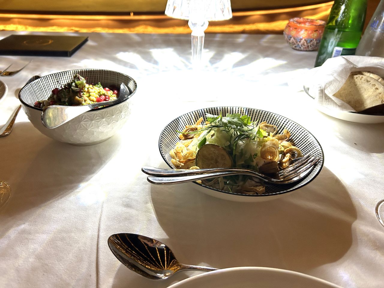 Once the sun sets, you head down to the restaurant for dinner. This is served in three courses with multiple dishes for each course based on local cuisine. It was all delicious and a lot of food, so bring your appetite!